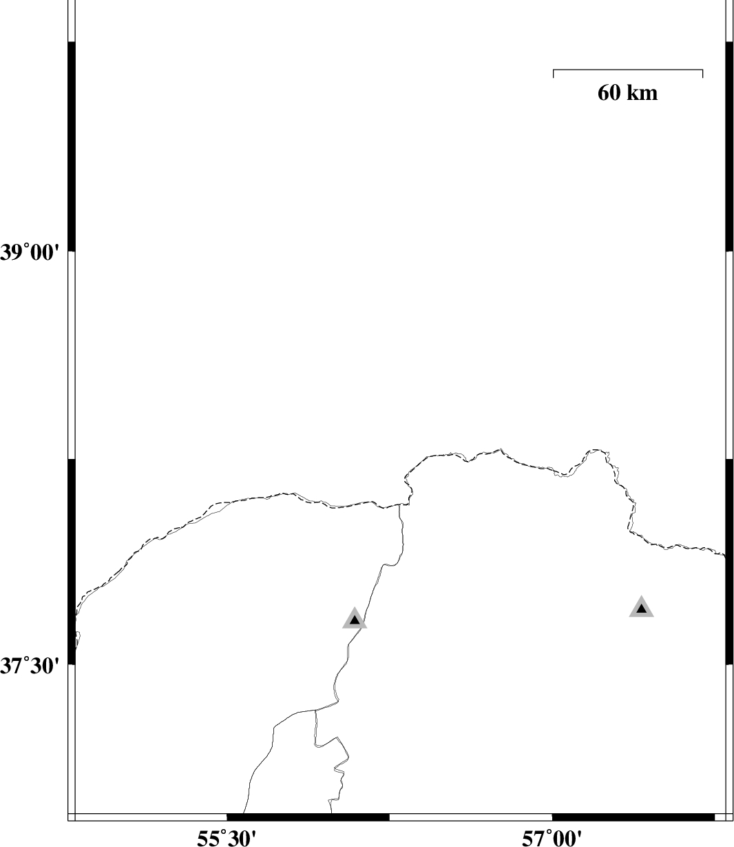 | 2012/04/19 | 18:01:00.3 | 22:31:00.3 | 37.45 | 57.03 | 17 | ML:2.9 | Khorasan(north) Province, 14 km Ashkhaneh | ||