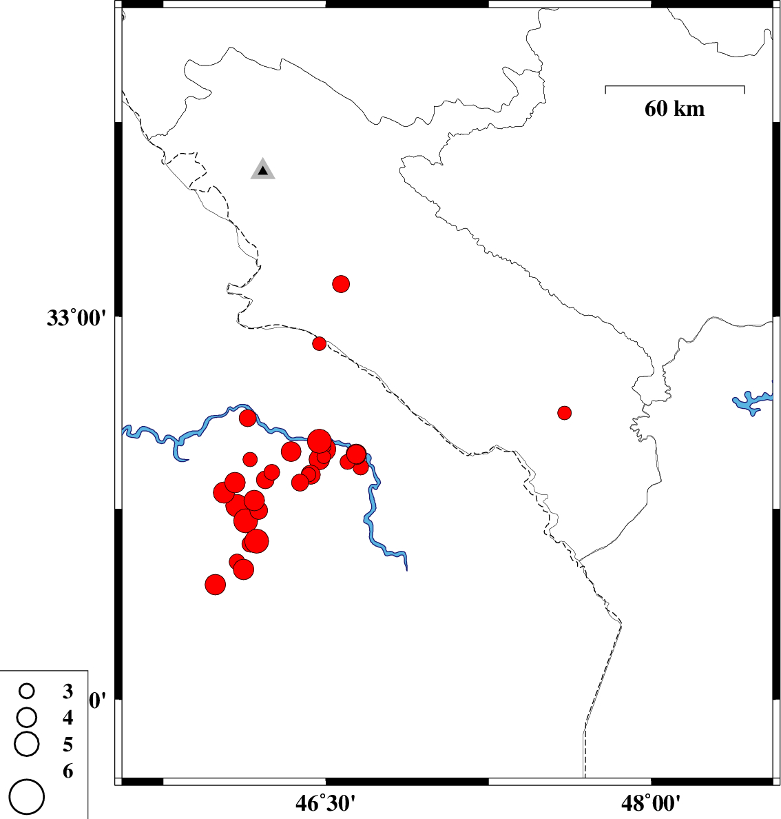 2012/04/20 05:22:33.6 09:52:33.6 32.5846.9417 ML:3.7 Iraq, 32 km South-West of Dehloran