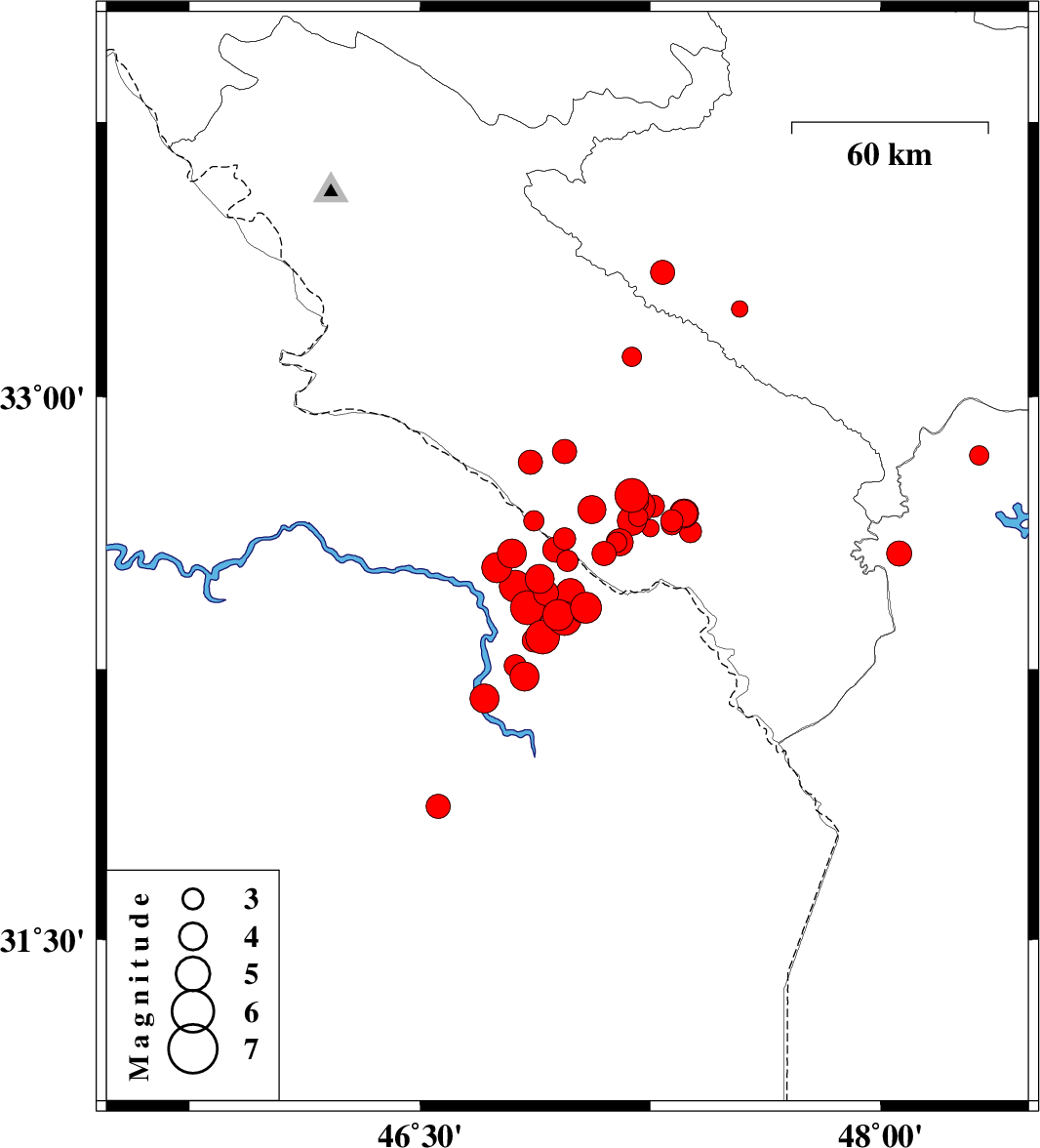 2012/04/20 01:48:42.9 06:18:42.9 32.647.1533 ML:4 Ilam Province, 15 km West of Dehloran