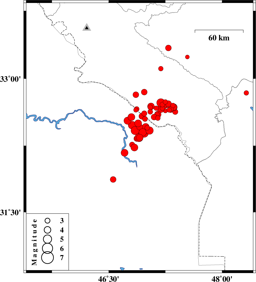 2012/04/20 01:48:42.9 06:18:42.9 32.647.1533 ML:4 Ilam Province, 15 km West of Dehloran