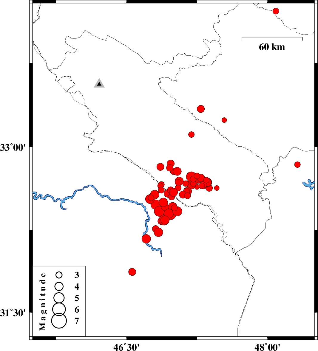 2012/04/23 02:45:14.5 07:15:14.5 32.5446.7618 ML:2.8 Iraq, 50 km South-West of Dehloran