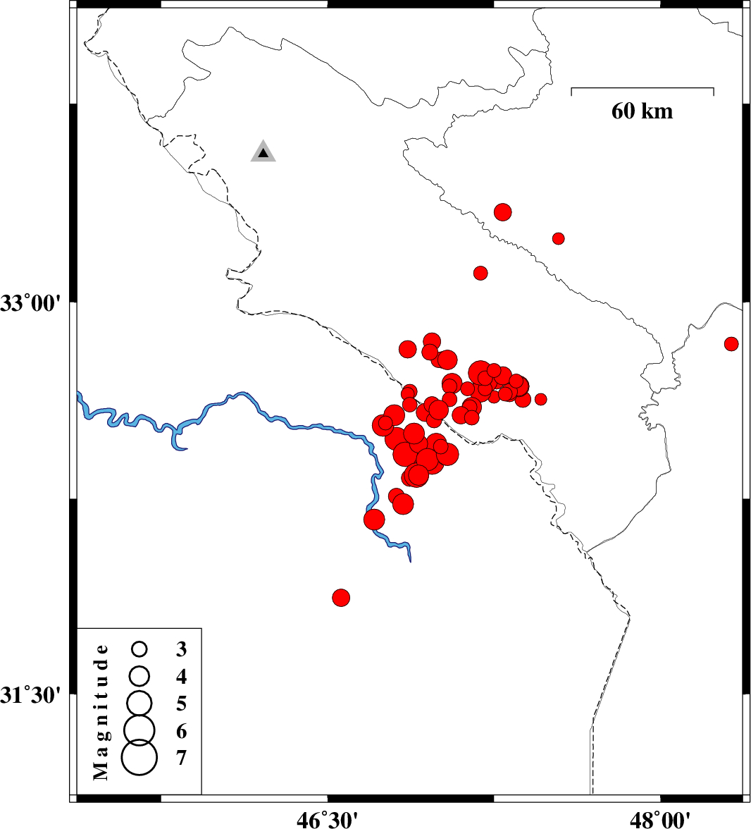 2012/04/20 01:48:42.9 06:18:42.9 32.647.1533 ML:4 Ilam Province, 15 km West of Dehloran
