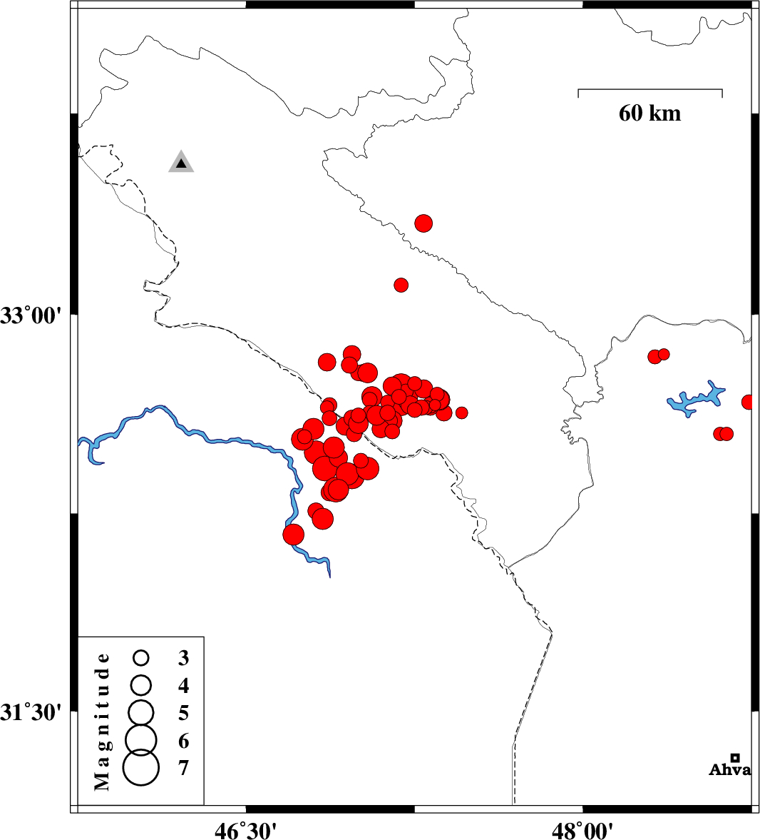 2012/04/20 01:48:42.9 06:18:42.9 32.647.1533 ML:4 Ilam Province, 15 km West of Dehloran