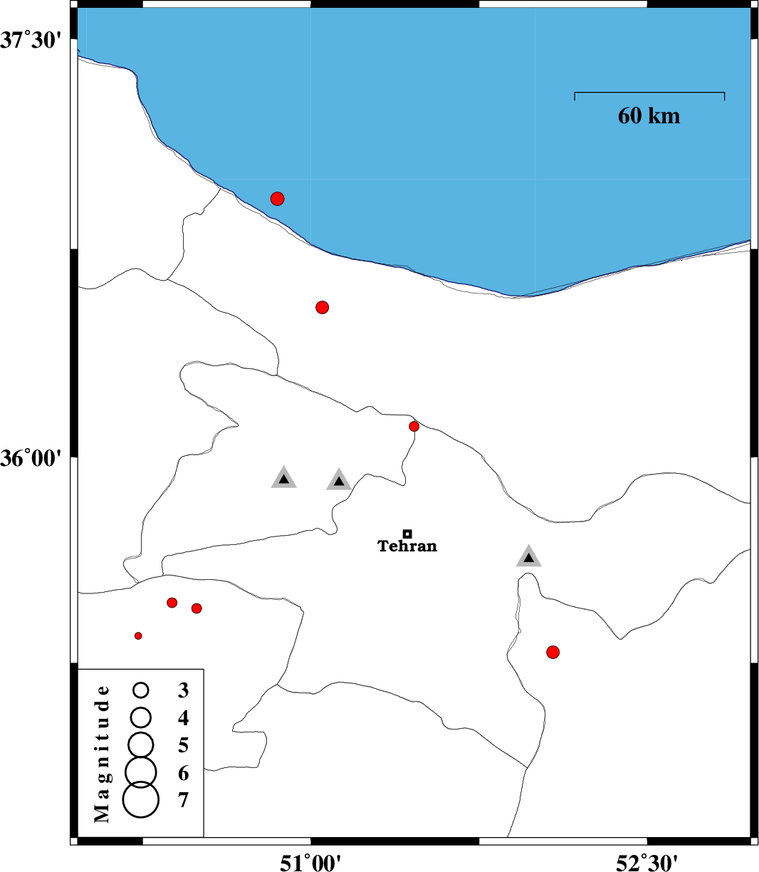 | 2012/04/26 | 07:12:27.6 | 11:42:27.6 | 36.11 | 51.46 | 14 | ML:2 | Tehran Province, 34 km North of Tajrish | ||