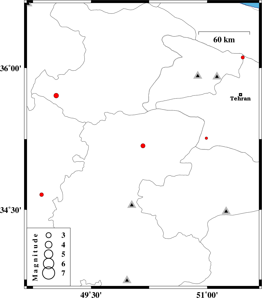 | 2012/04/26 | 07:12:27.6 | 11:42:27.6 | 36.11 | 51.46 | 14 | ML:2 | Tehran Province, 34 km North of Tajrish | ||