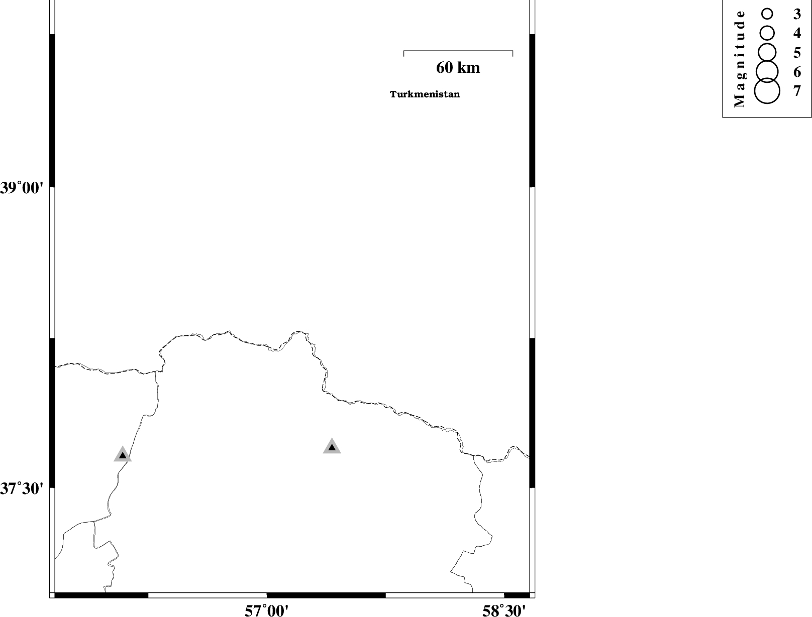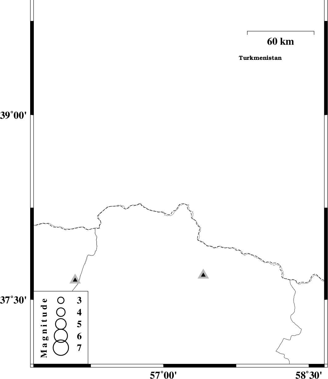 | 2012/04/29 | 17:55:47.8 | 22:25:47.8 | 38.47 | 57.16 | 14 | ML:2.7 | Turkmenistan |
