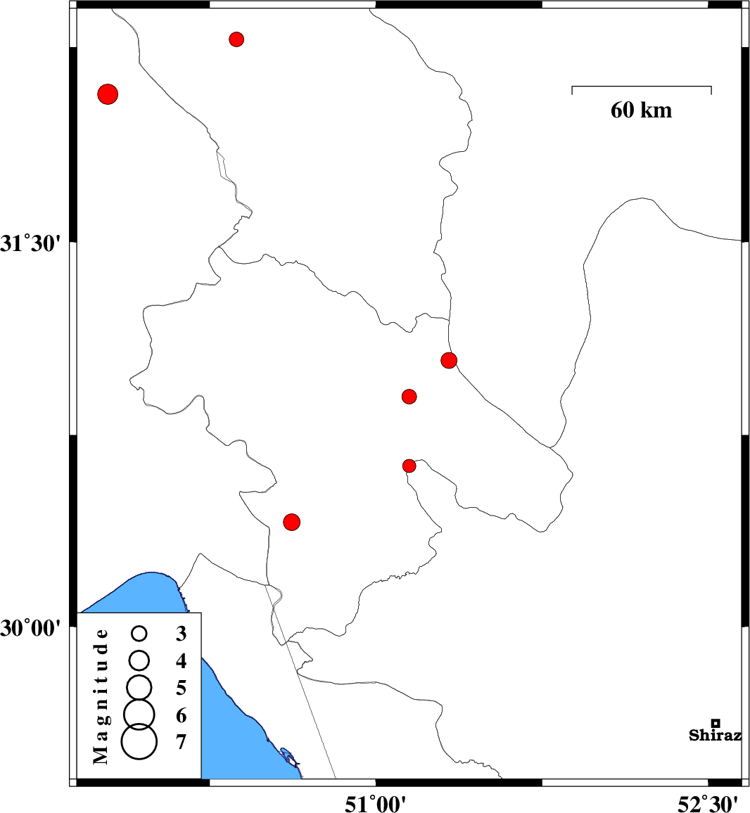 | 2012/05/04 | 08:34:28.3 | 13:04:28.3 | 31.04 | 51.33 | 14 | ML:3.2 | Kohkiluieh va boyerahmad Province, 22 km North-West of Sisakht | ||