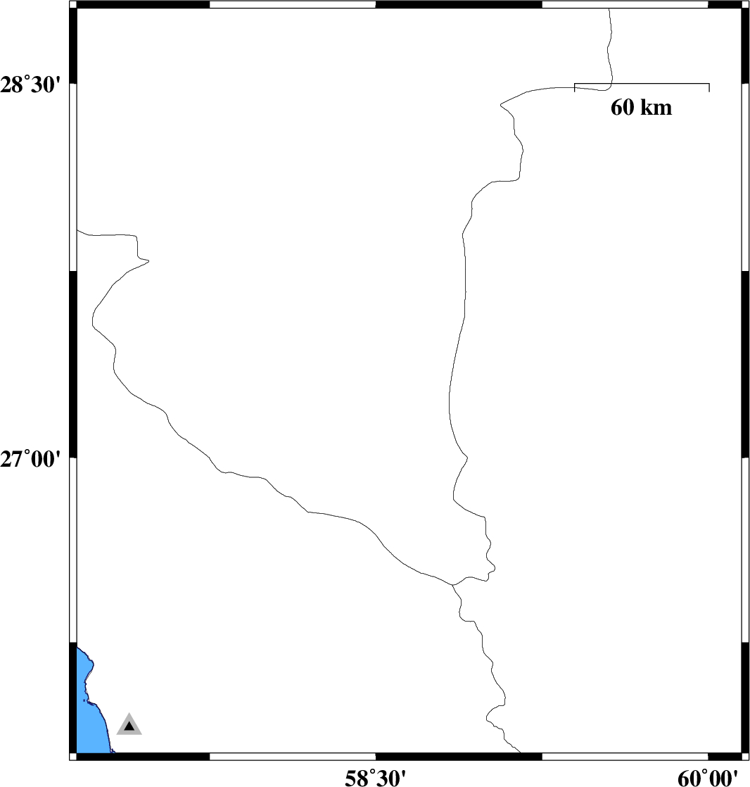 2012/05/07 | 00:29:11.4 | 04:59:11.4 | 27.3 | 58.65 | 15 | ML:3.8 | Kerman Province, 114 km South-East of Manujan | ||