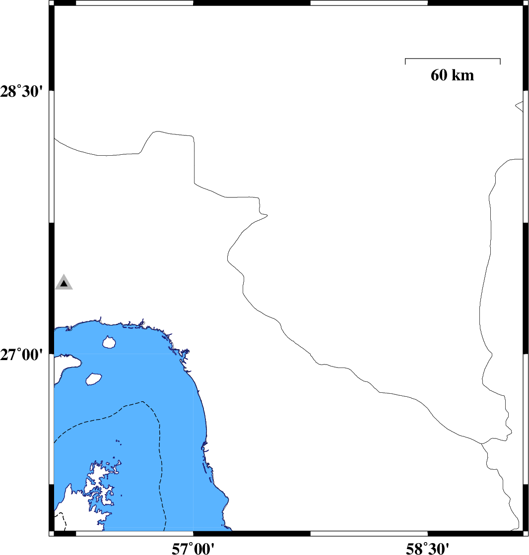 2012/05/02 | 08:07:36.0 | 12:37:36.0 | 27.86 | 56.74 | 14 | ML:2.8 | Hormozgan Province, 69 km North-West of Dehbarez | ||