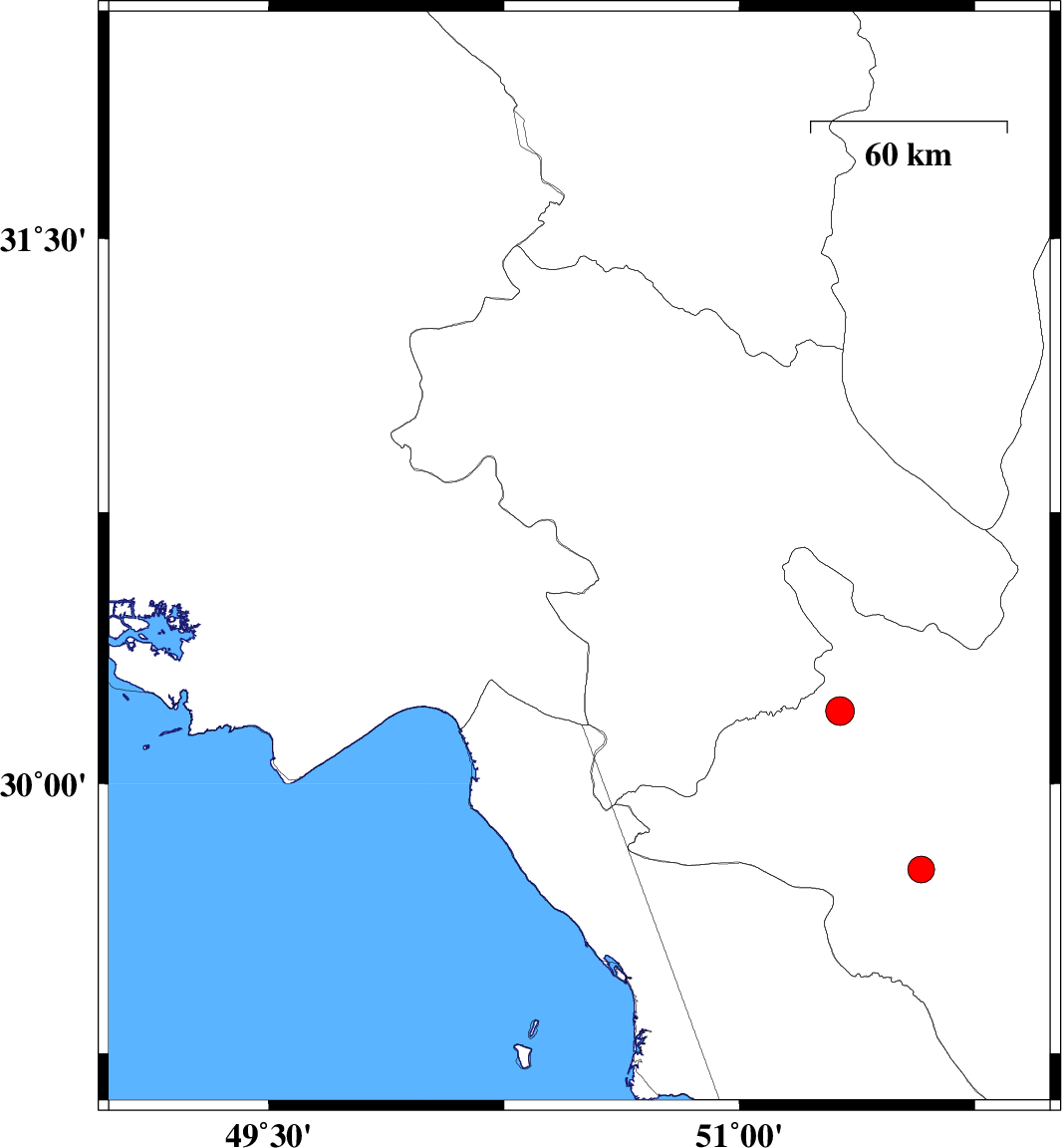 | 2012/05/04 | 08:34:28.3 | 13:04:28.3 | 31.04 | 51.33 | 14 | ML:3.2 | Kohkiluieh va boyerahmad Province, 22 km North-West of Sisakht | ||