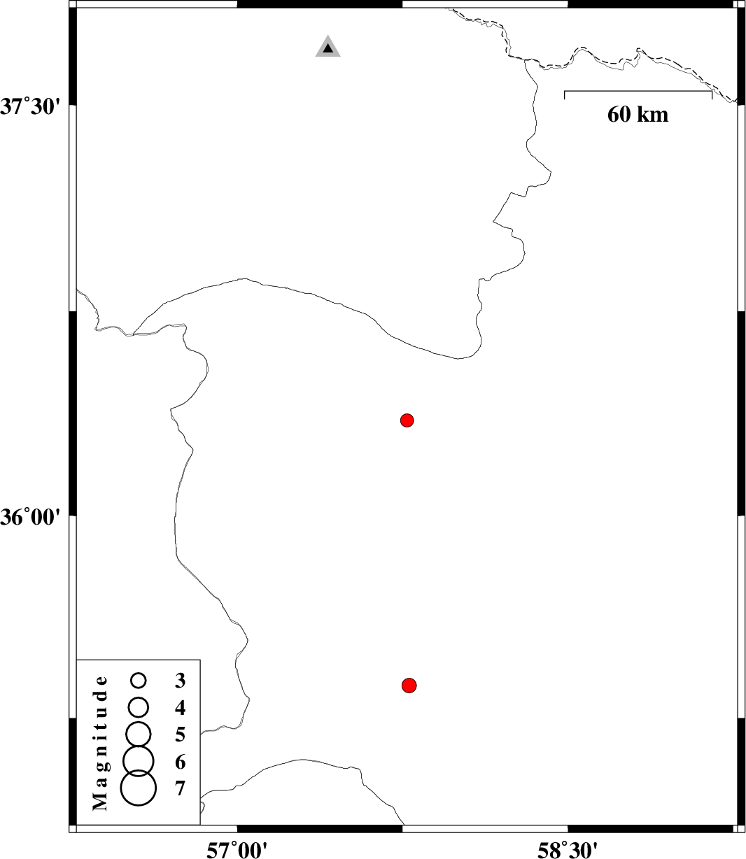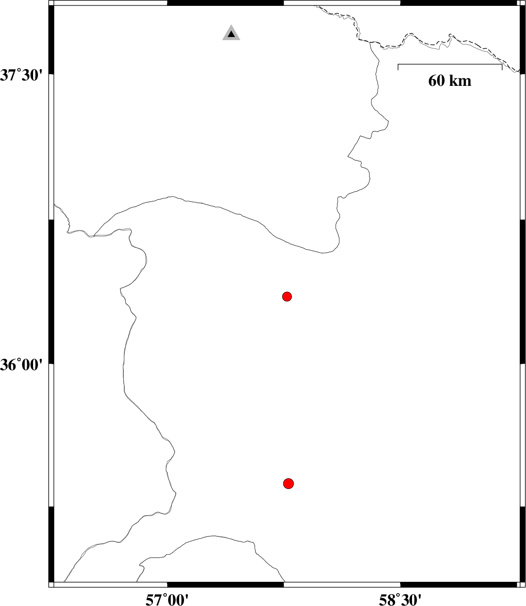 | 2012/05/07 | 09:42:38.4 | 14:12:38.4 | 35.37 | 57.78 | 15 | ML:2.9 | Khorasan(center) Province, 20 km North-West of Bardeskan |