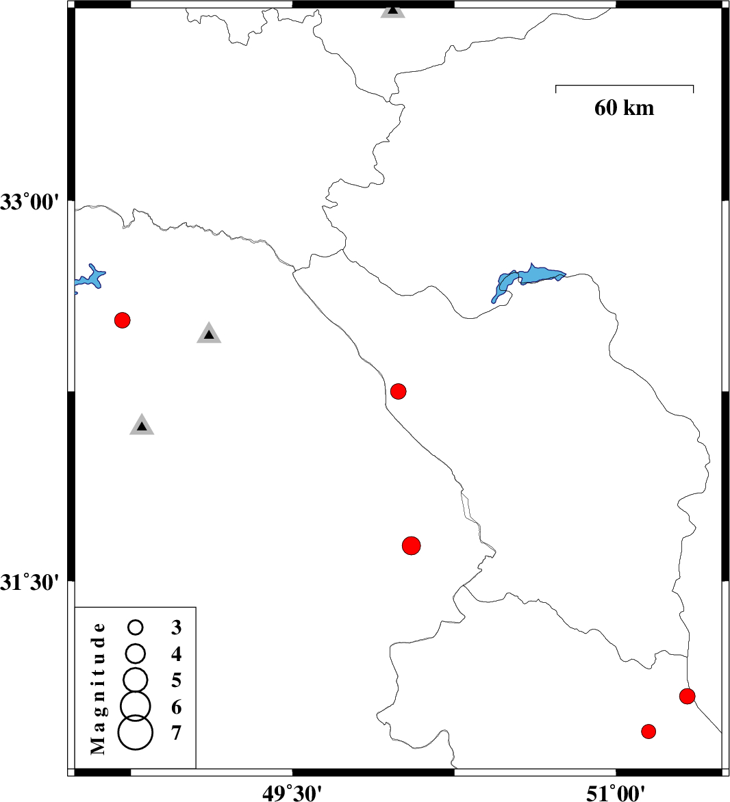 | 2012/05/04 | 08:34:28.3 | 13:04:28.3 | 31.04 | 51.33 | 14 | ML:3.2 | Kohkiluieh va boyerahmad Province, 22 km North-West of Sisakht |