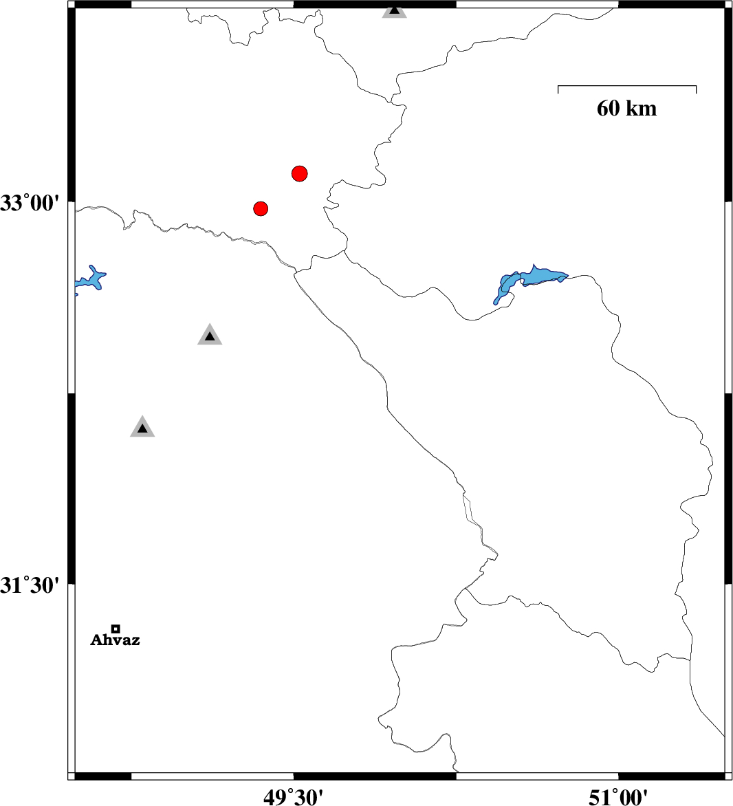 | 2012/05/05 | 12:38:36.8 | 17:08:36.8 | 32.53 | 48.71 | 14 | ML:3.3 | Khoozestan Province, 35 km East of Andimeshk | ||