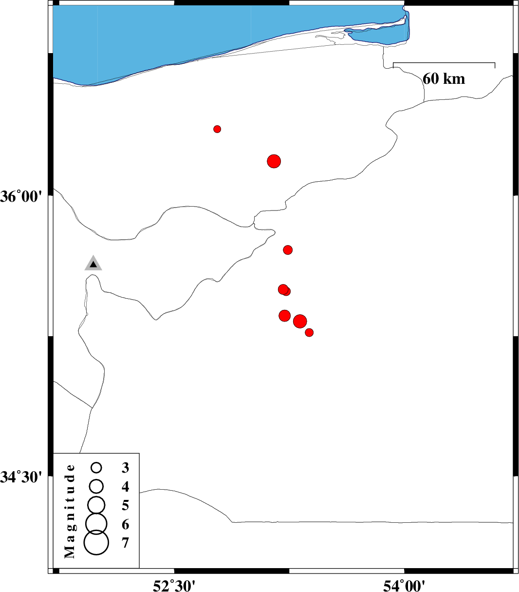 | 2012/05/08 | 01:11:40.8 | 05:41:40.8 | 35.33 | 53.32 | 36 | ML:3.9 | Semnan Province, 28 km South of Semnan | ||