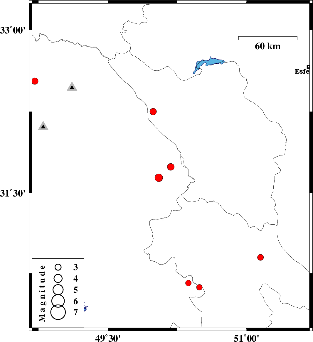| 2012/05/05 | 01:17:43.4 | 05:47:43.4 | 30.9 | 51.15 | 14 | ML:2.9 | Kohkiluieh va boyerahmad Province, 30 km West of Sisakht |