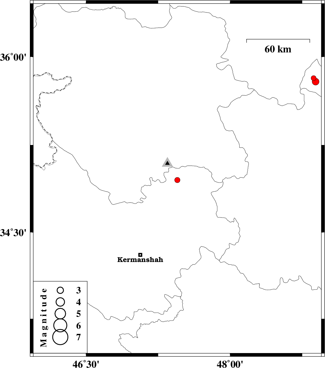 | 2012/05/14 | 13:44:49.9 | 18:14:49.9 | 34.95 | 47.45 | 16 | ML:2.6 | Kermanshah Province, 23 km North-West of Sonqor | ||