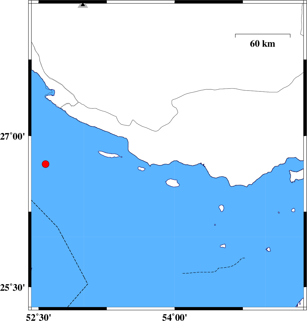 2012/05/11 06:41:25.4 11:11:25.4 26.2454.1115 ML:3.1 Persian Gulf, 81 km South-West of Bandar-e lengeh