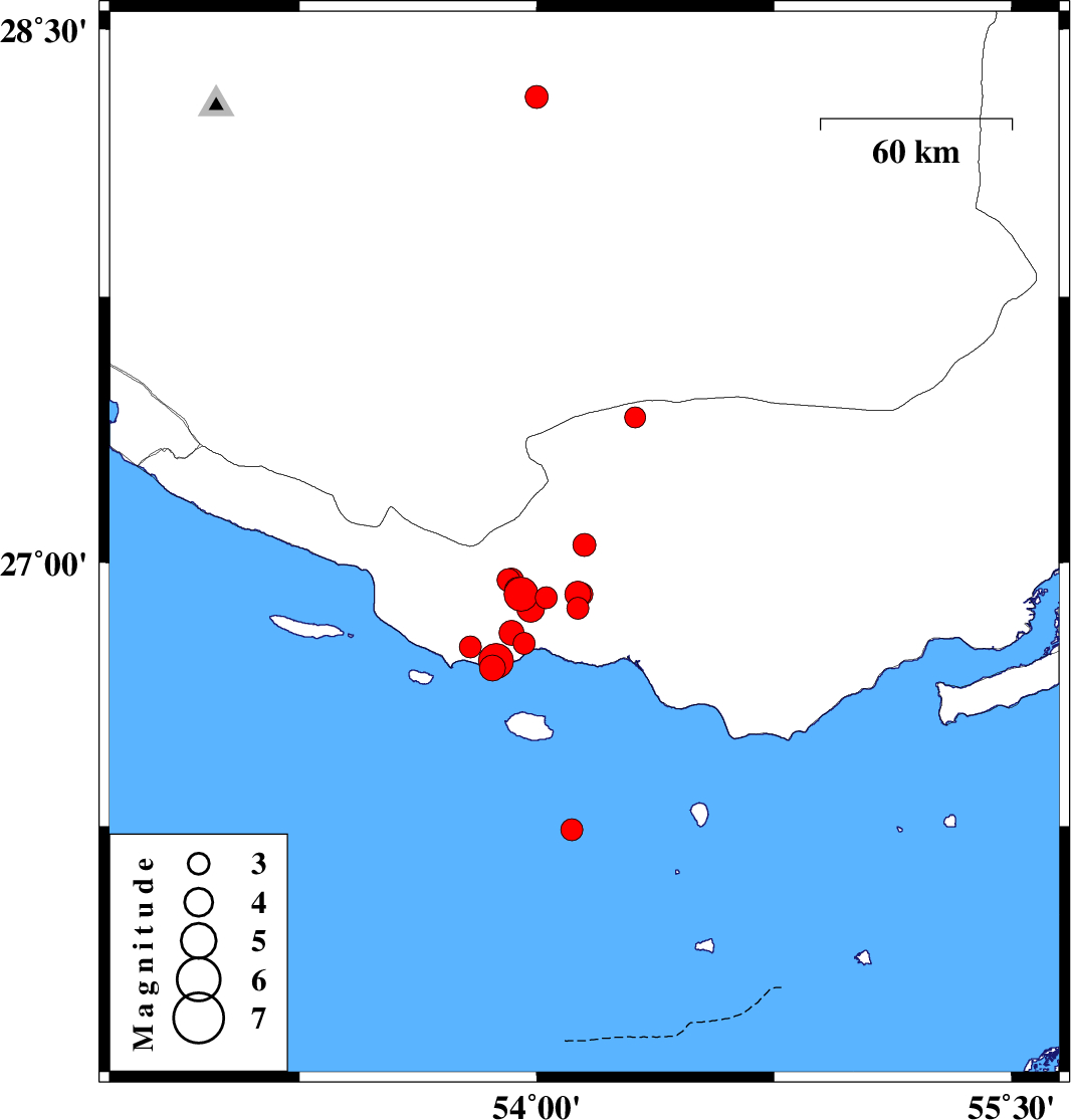 2012/05/17 19:32:11.5 00:02:11.5 26.8753.9833 ML:4 Hormozgan Province, 53 km South-West of Bastak