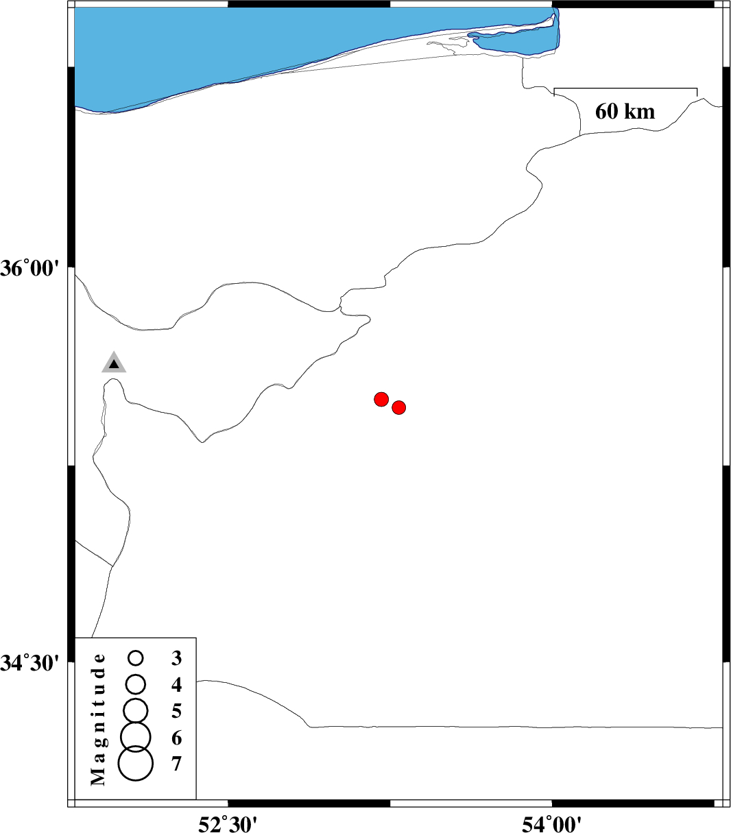 | 2012/05/11 | 07:45:05.8 | 12:15:05.8 | 35.5 | 53.21 | 16 | ML:2.9 | Semnan Province, 19 km West of Semnan |