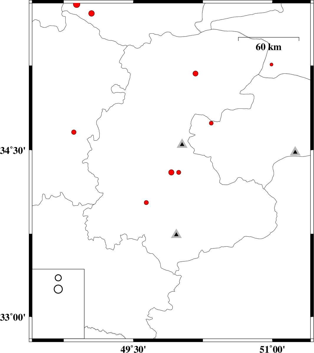 | 2012/05/14 | 00:00:41.6 | 04:30:41.6 | 34.3 | 49.99 | 8 | ML:2.1 | Markazi Province, 25 km South of Ashtiyan | ||