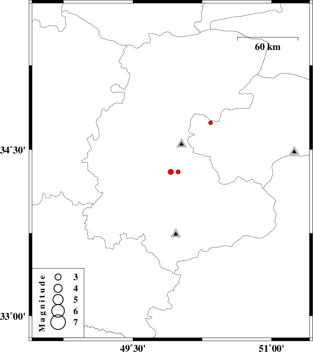 | 2012/05/14 | 00:00:41.6 | 04:30:41.6 | 34.3 | 49.99 | 8 | ML:2.1 | Markazi Province, 25 km South of Ashtiyan |