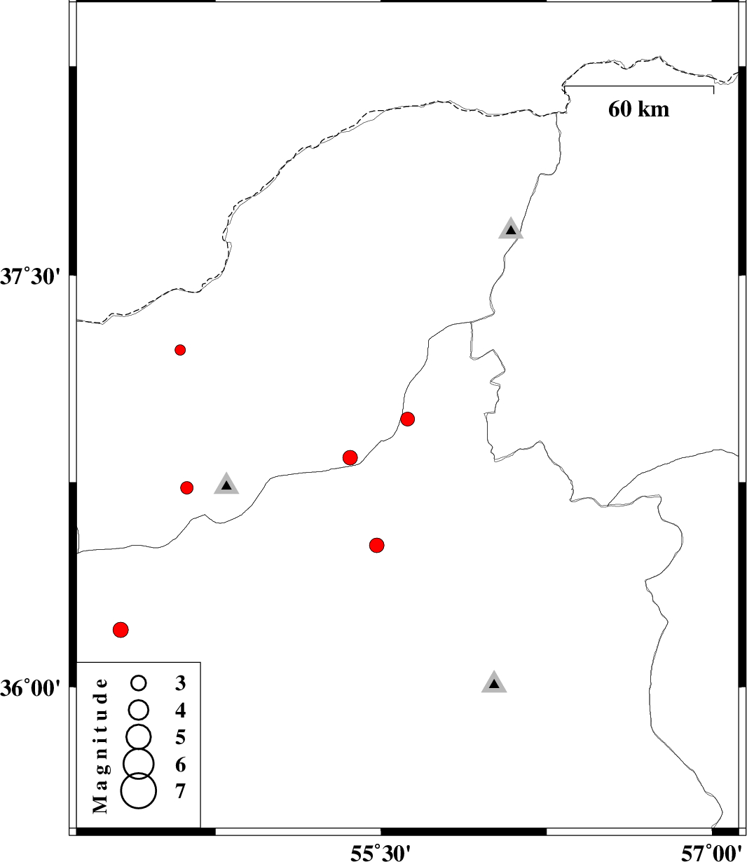 | 2012/05/17 | 01:18:57.9 | 05:48:57.9 | 36.52 | 55.48 | 14 | ML:3 | Semnan Province, 47 km North-East of Shahrud |