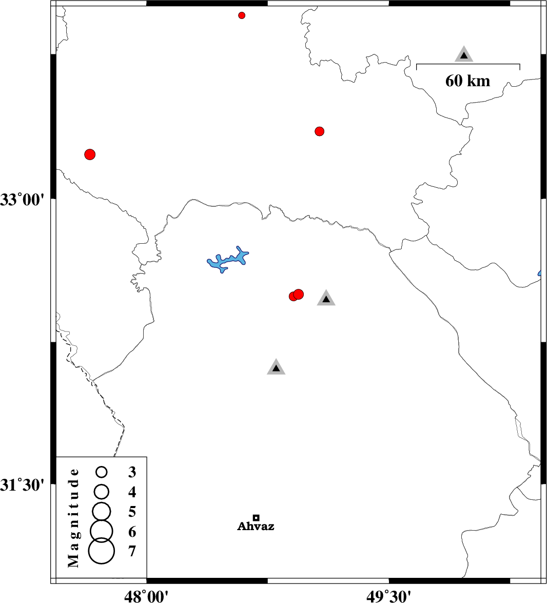| 2012/06/02 | 02:54:44.3 | 07:24:44.3 | 32.5 | 48.94 | 15 | ML:2.8 | Khoozestan Province, 20 km North-West of Lali | ||