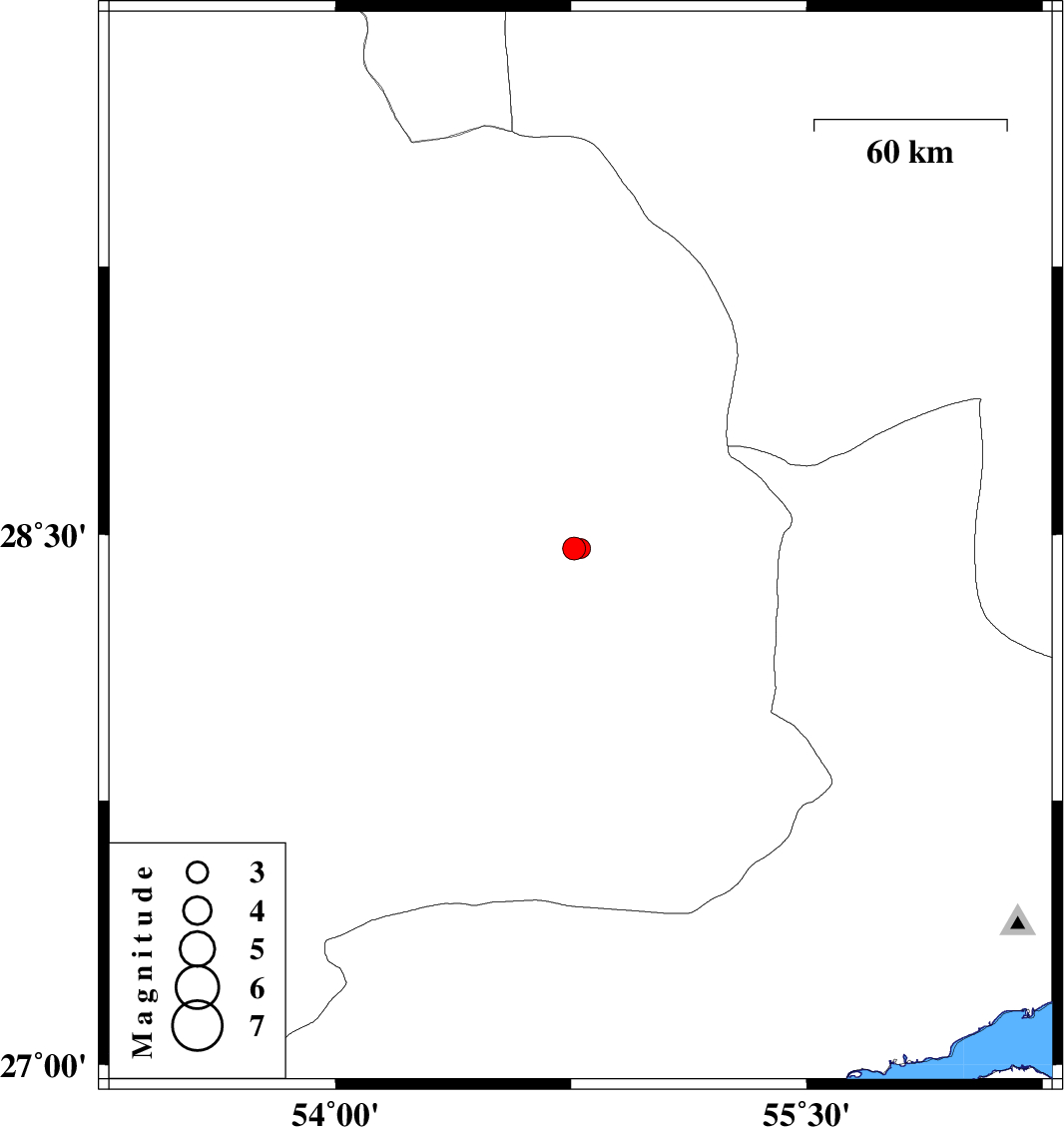 | 2012/06/02 | 13:40:50.4 | 18:10:50.4 | 28.46 | 54.78 | 18 | ML:2.8 | Fars Province, 40 km South-East of Darab |