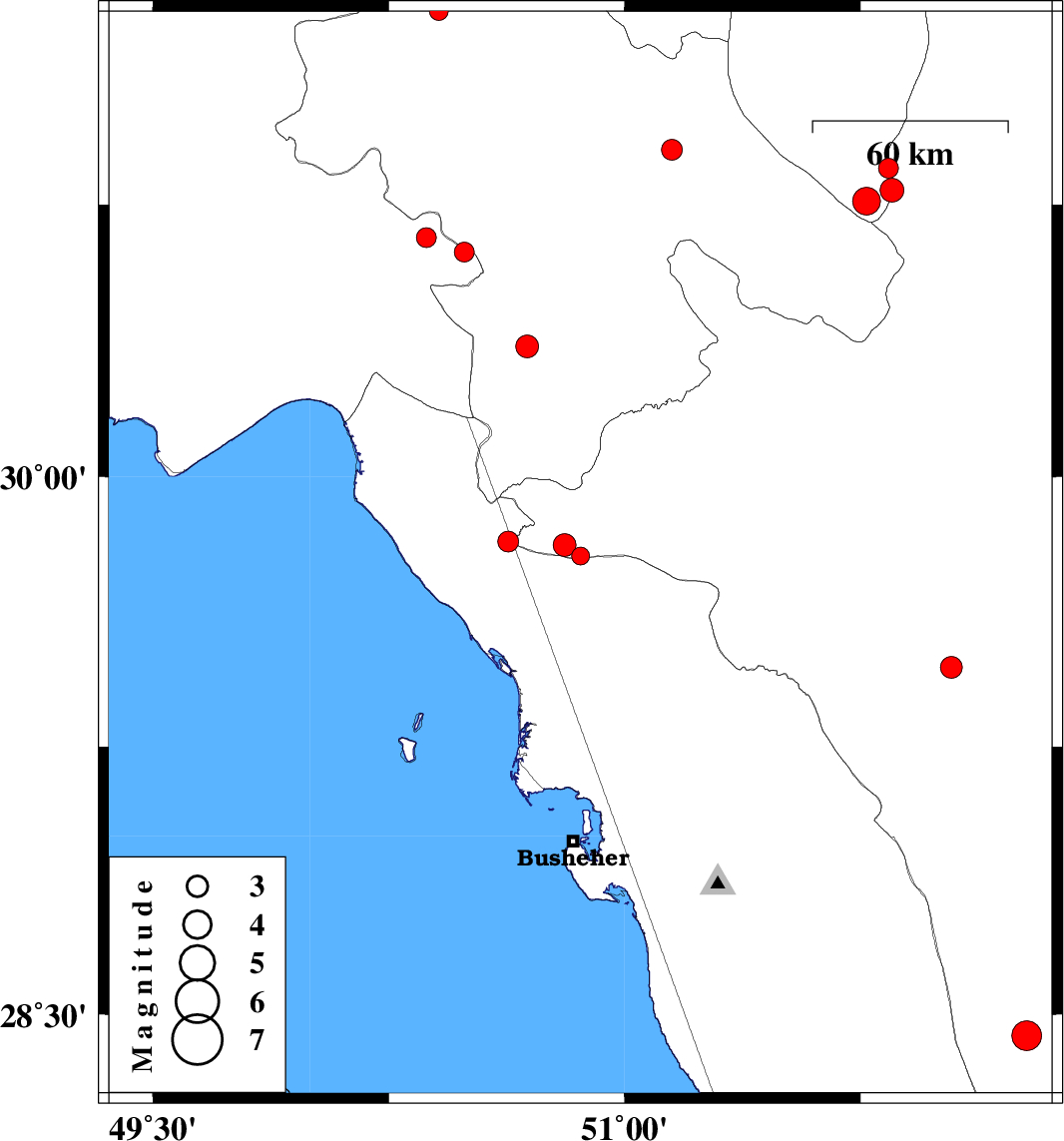 2012/06/04 19:04:19.9 23:34:19.9 29.8250.6346 ML:2.9 Bushehr Province, 29 km North-East of Bandar-e genaveh