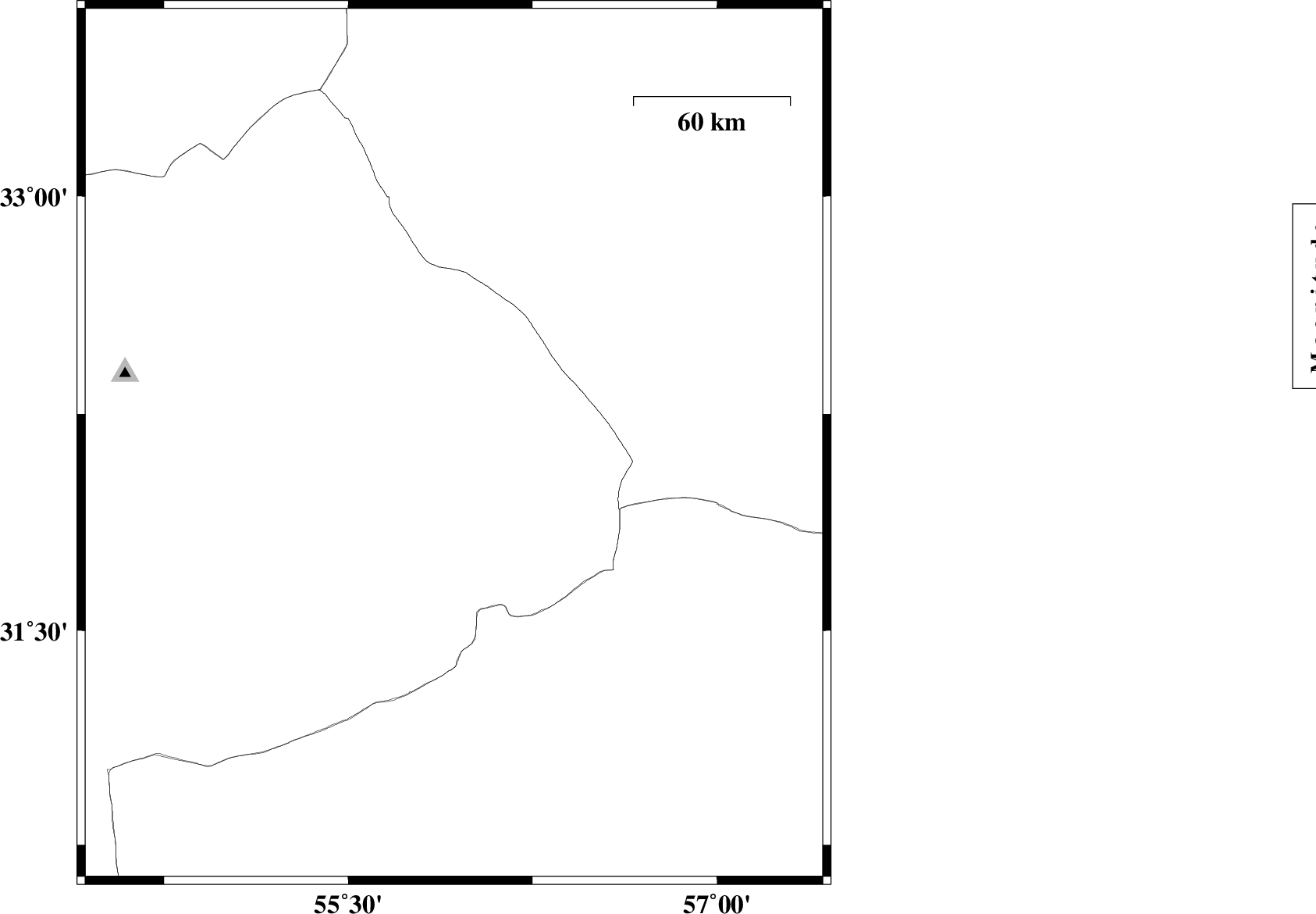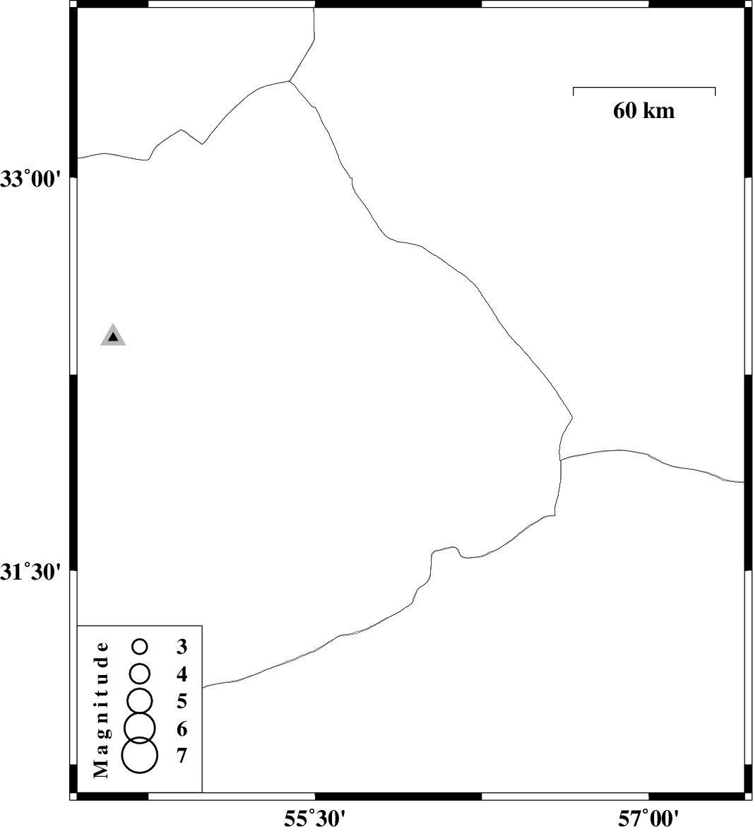 | 2012/06/04 | 17:55:14.4 | 22:25:14.4 | 32.14 | 55.93 | 15 | ML:2.7 | Yazd Province, 78 km North-East of Bafq |