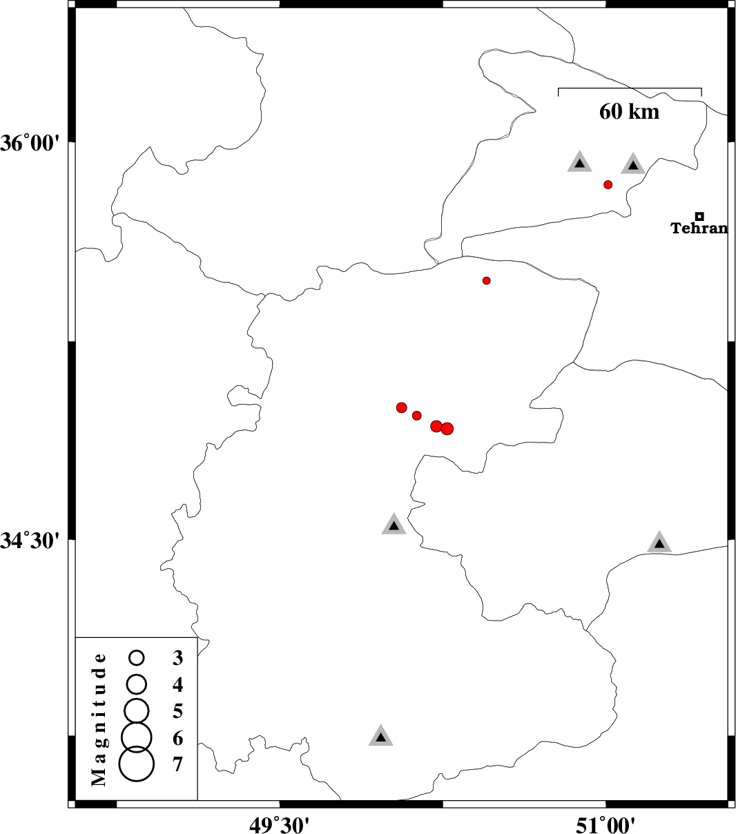 | 2012/06/05 | 04:13:40.2 | 08:43:40.2 | 35 | 50.06 | 18 | ML:2.1 | Markazi Province, 28 km West of Saveh | ||
