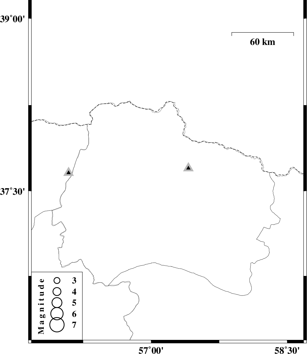 | 2012/06/05 | 06:04:34.3 | 10:34:34.3 | 37.68 | 57.18 | 14 | ML:1.6 | Khorasan(north) Province, 26 km North-West of Bojnurd |
