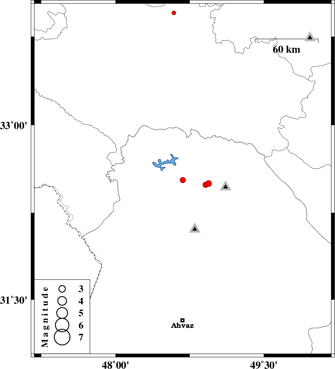 | 2012/06/02 | 02:54:44.3 | 07:24:44.3 | 32.5 | 48.94 | 15 | ML:2.8 | Khoozestan Province, 20 km North-West of Lali | ||