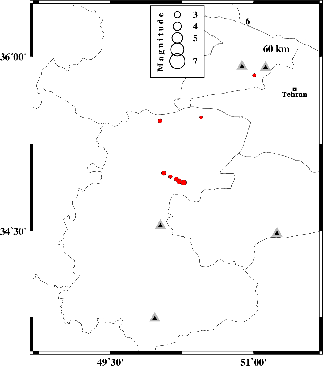 | 2012/06/05 | 04:13:40.2 | 08:43:40.2 | 35 | 50.06 | 18 | ML:2.1 | Markazi Province, 28 km West of Saveh | ||