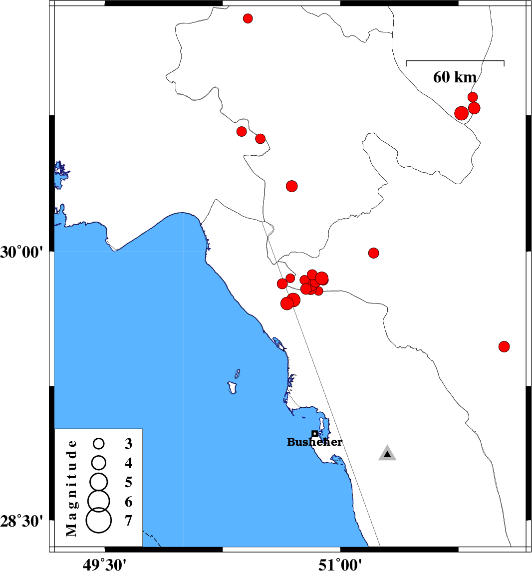 2012/06/04 19:04:19.9 23:34:19.9 29.8250.6346 ML:2.9 Bushehr Province, 29 km North-East of Bandar-e genaveh
