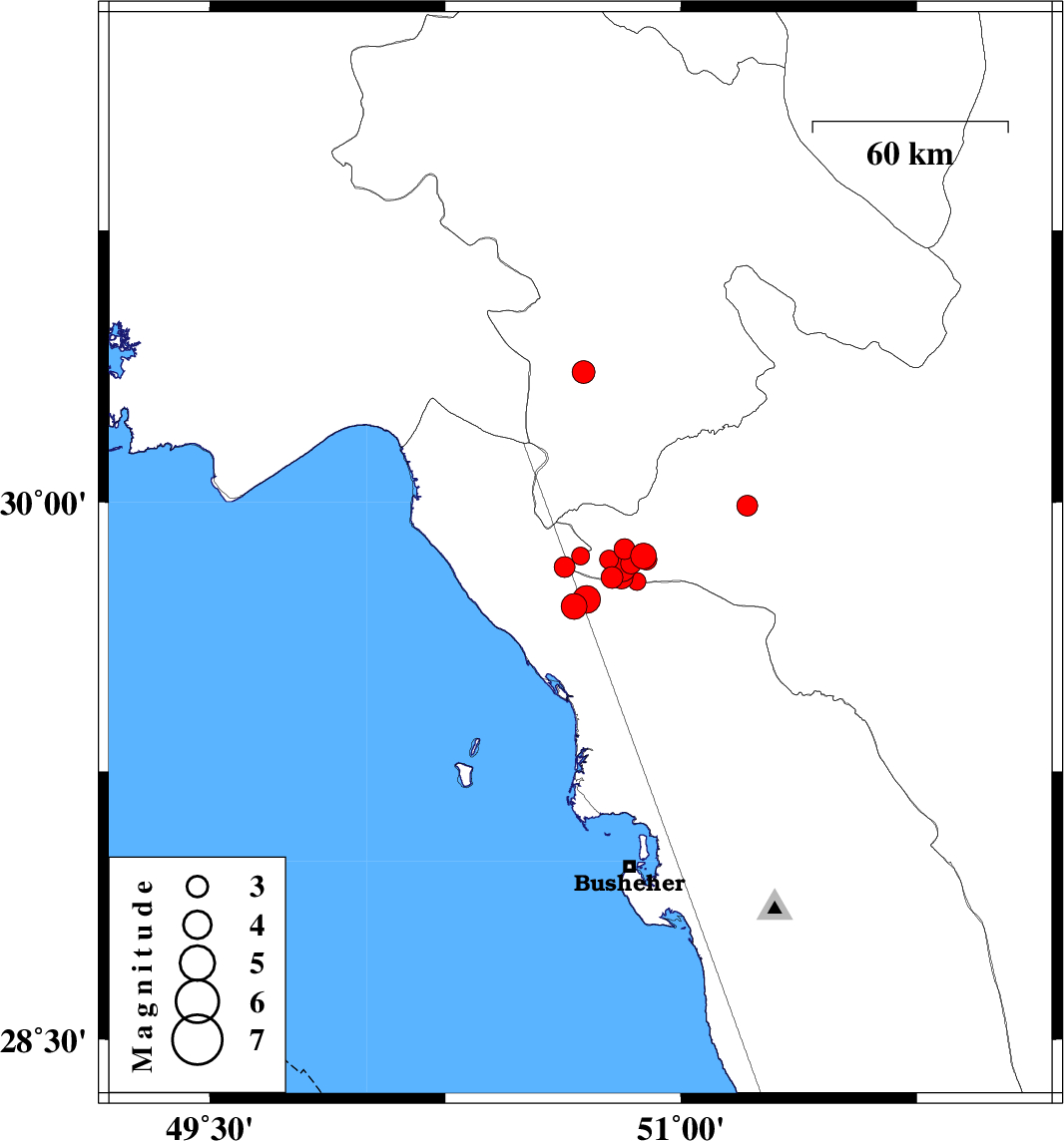 2012/06/04 19:04:19.9 23:34:19.9 29.8250.6346 ML:2.9 Bushehr Province, 29 km North-East of Bandar-e genaveh