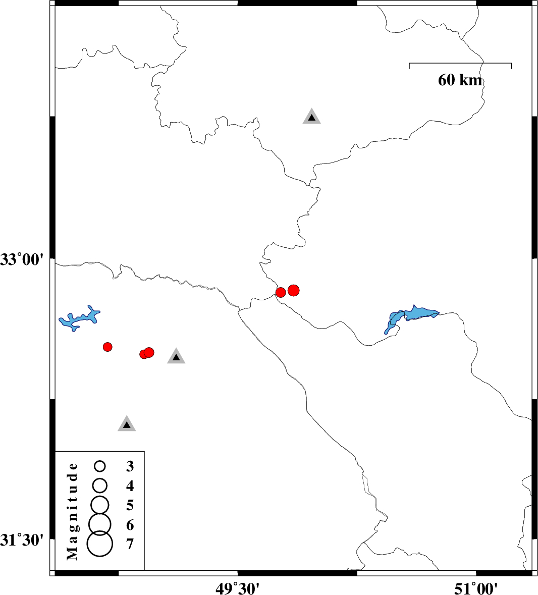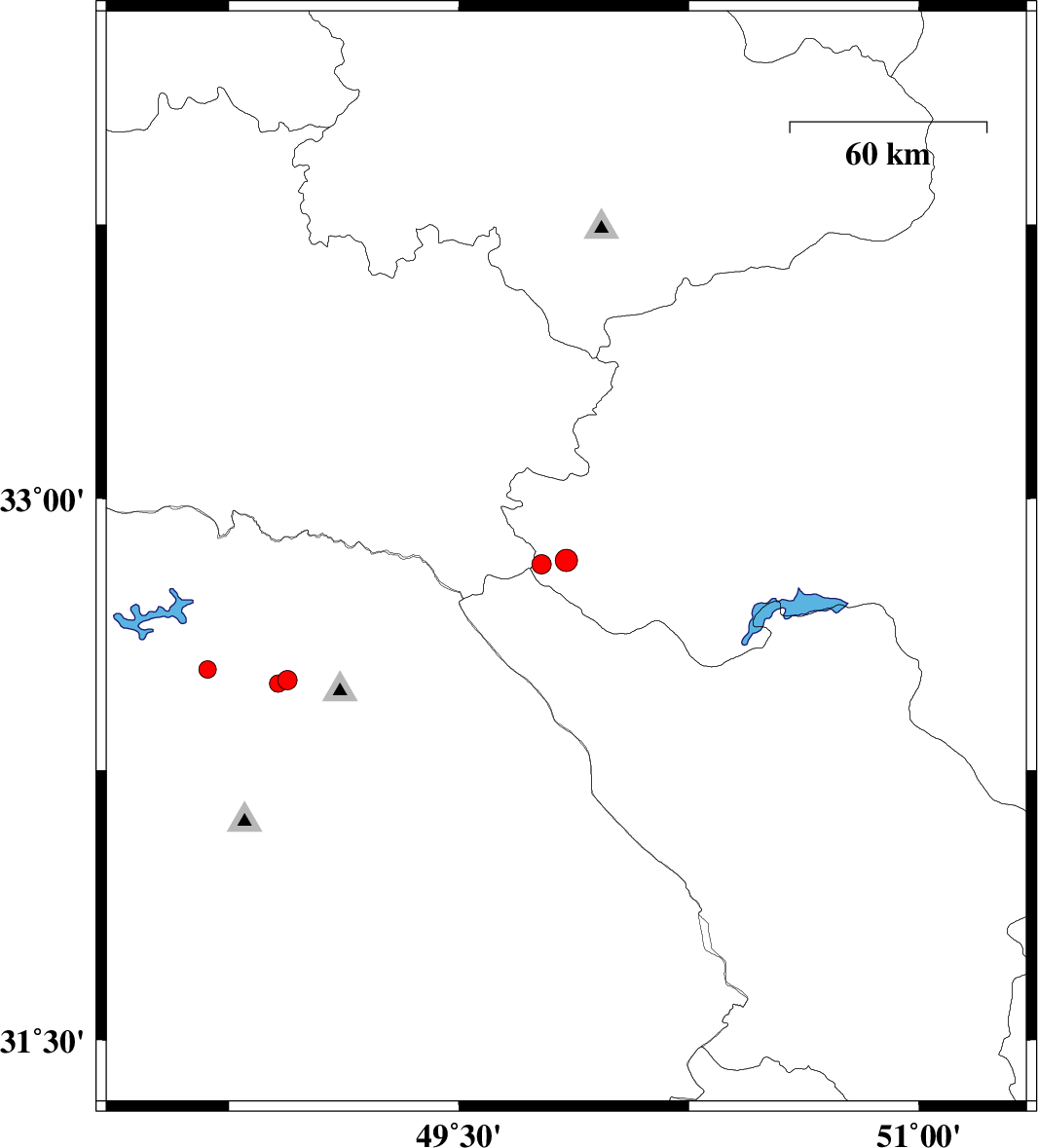 | 2012/06/08 | 15:17:55.8 | 19:47:55.8 | 32.83 | 49.85 | 14 | ML:3.3 | Esfahan Province, 27 km South-West of Fereydunshahr | ||
