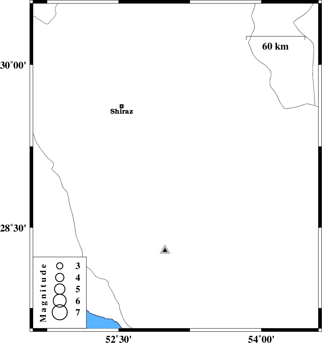 | 2012/06/12 | 22:53:50.2 | 03:23:50.2 | 29.06 | 53.1 | 15 | ML:3.6 | Fars Province, 54 km North-West of Fasa |