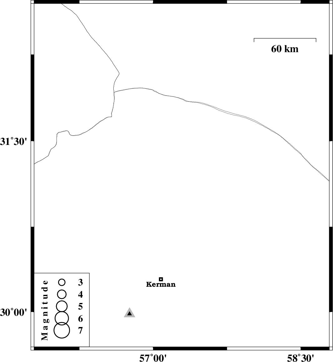 | 2012/06/13 | 05:43:52.3 | 10:13:52.3 | 31.19 | 57.29 | 14 | ML:2.5 | Kerman Province, 46 km East of Ravar |