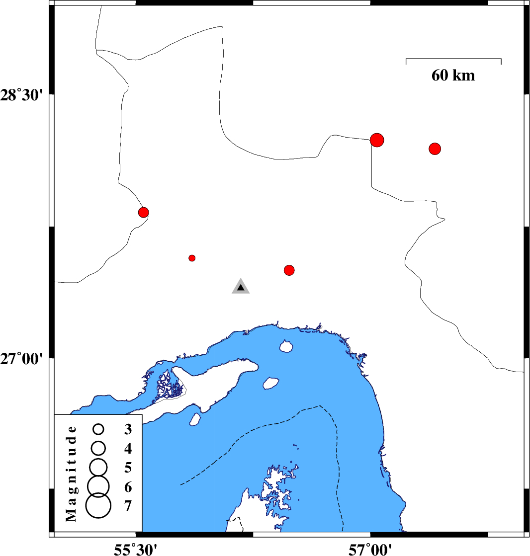 | 2012/06/11 | 10:06:53.0 | 14:36:53.0 | 27.83 | 55.55 | 15 | ML:3 | Fars Province, 63 km South-West of Hajiabad | ||