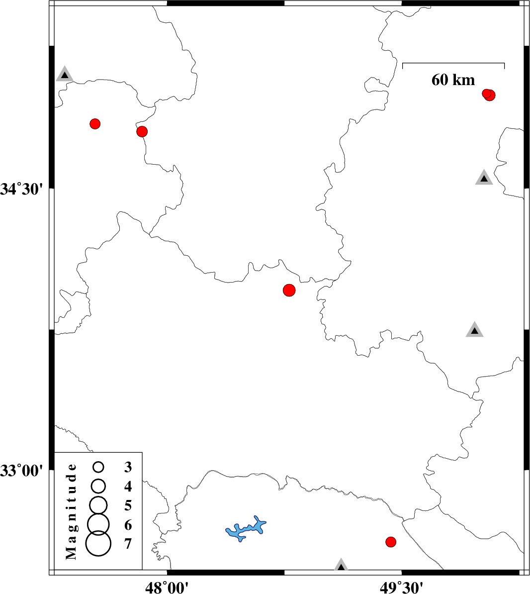 | 2012/06/16 | 13:40:36.2 | 18:10:36.2 | 33.96 | 48.78 | 15 | ML:3.5 | Lorestan Province, 7 km Borujerd | ||