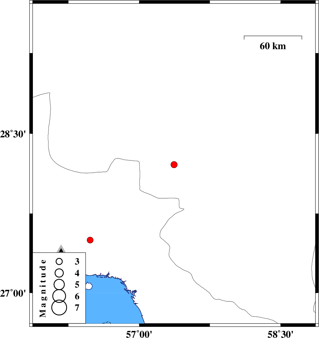 | 2012/06/16 | 08:57:23.9 | 13:27:23.9 | 27.5 | 56.48 | 14 | ML:3 | Hormozgan Province, 40 km North-East of Bandar-e abbas |