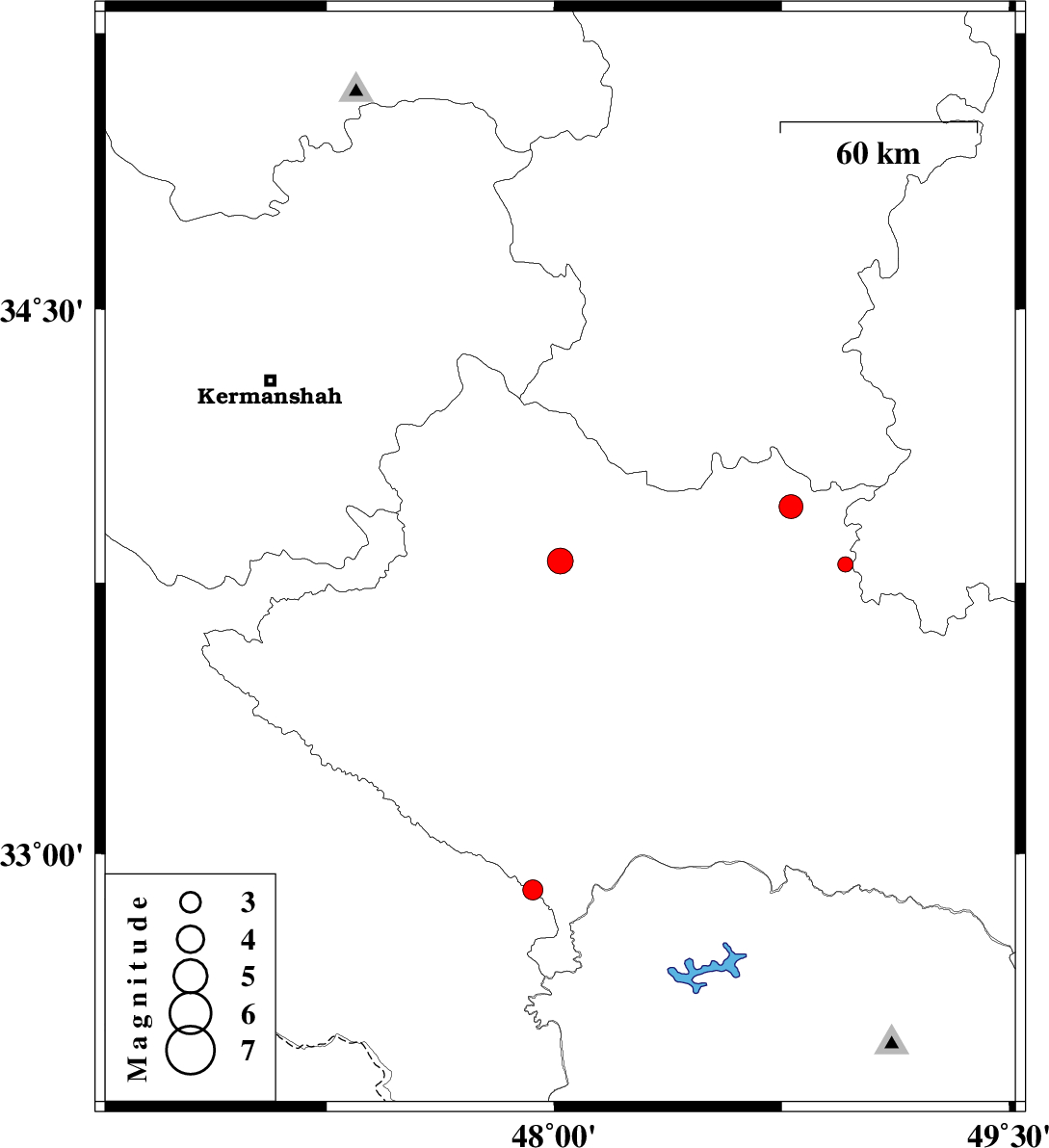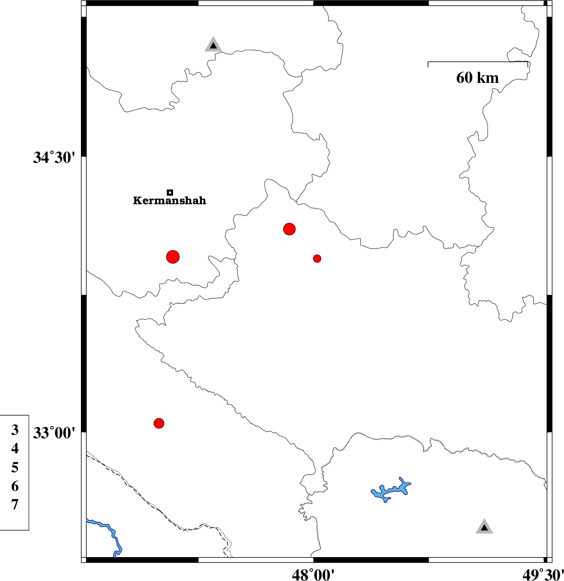 | 2012/06/17 | 04:03:46.2 | 08:33:46.2 | 32.9 | 47.93 | 15 | ML:3 | Lorestan Province, 34 km South-East of Pol-e dokhtar | ||