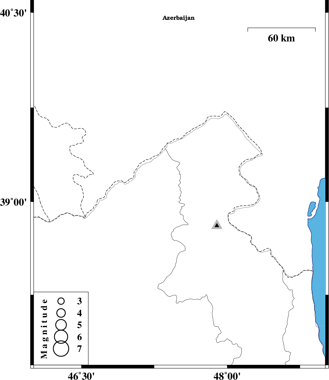 | 2012/06/25 | 03:22:29.2 | 07:52:29.2 | 39.18 | 47.51 | 14 | ML:2.6 | Azarbaijan Sharghi Province, 53 km North-West of Germi |