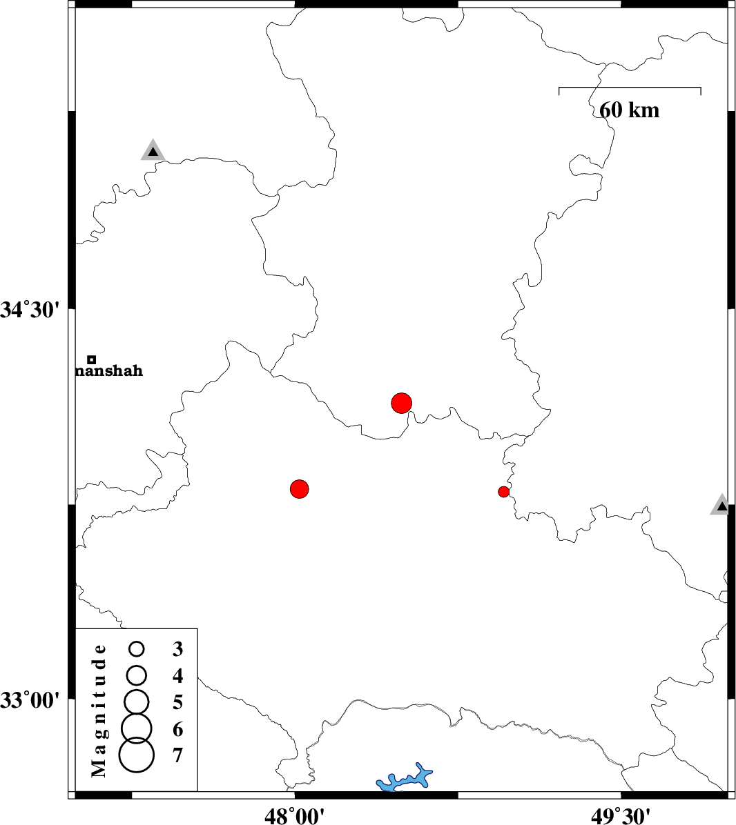 | 2012/06/22 | 02:46:32.0 | 07:16:32.0 | 33.81 | 48.02 | 41 | ML:3.8 | Lorestan Province, 30 km South of Nurabad | ||