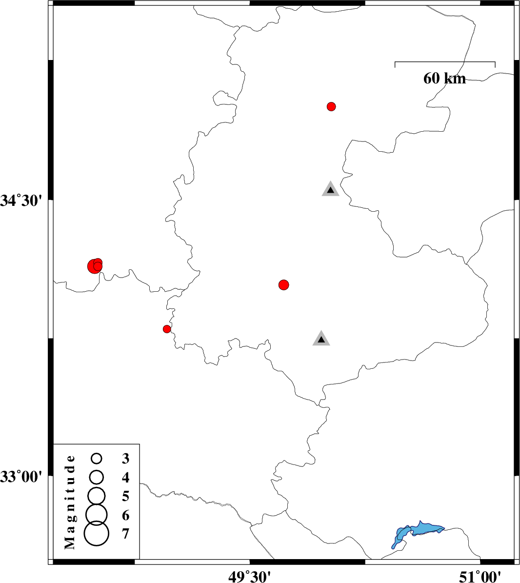 | 2012/06/28 | 17:24:10.7 | 21:54:10.7 | 34.14 | 48.51 | 15 | ML:2.5 | Hamedan Province, 15 km East of Nahavand | ||