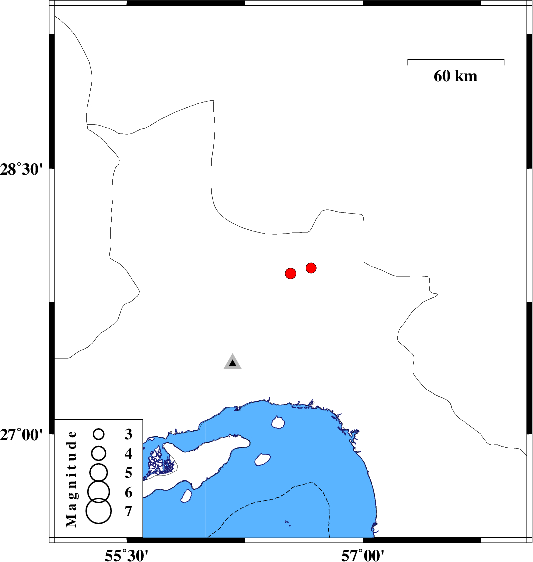 | 2012/06/29 | 12:28:13.6 | 16:58:13.6 | 27.91 | 56.54 | 14 | ML:3.1 | Hormozgan Province, 85 km North-East of Bandar-e abbas | ||