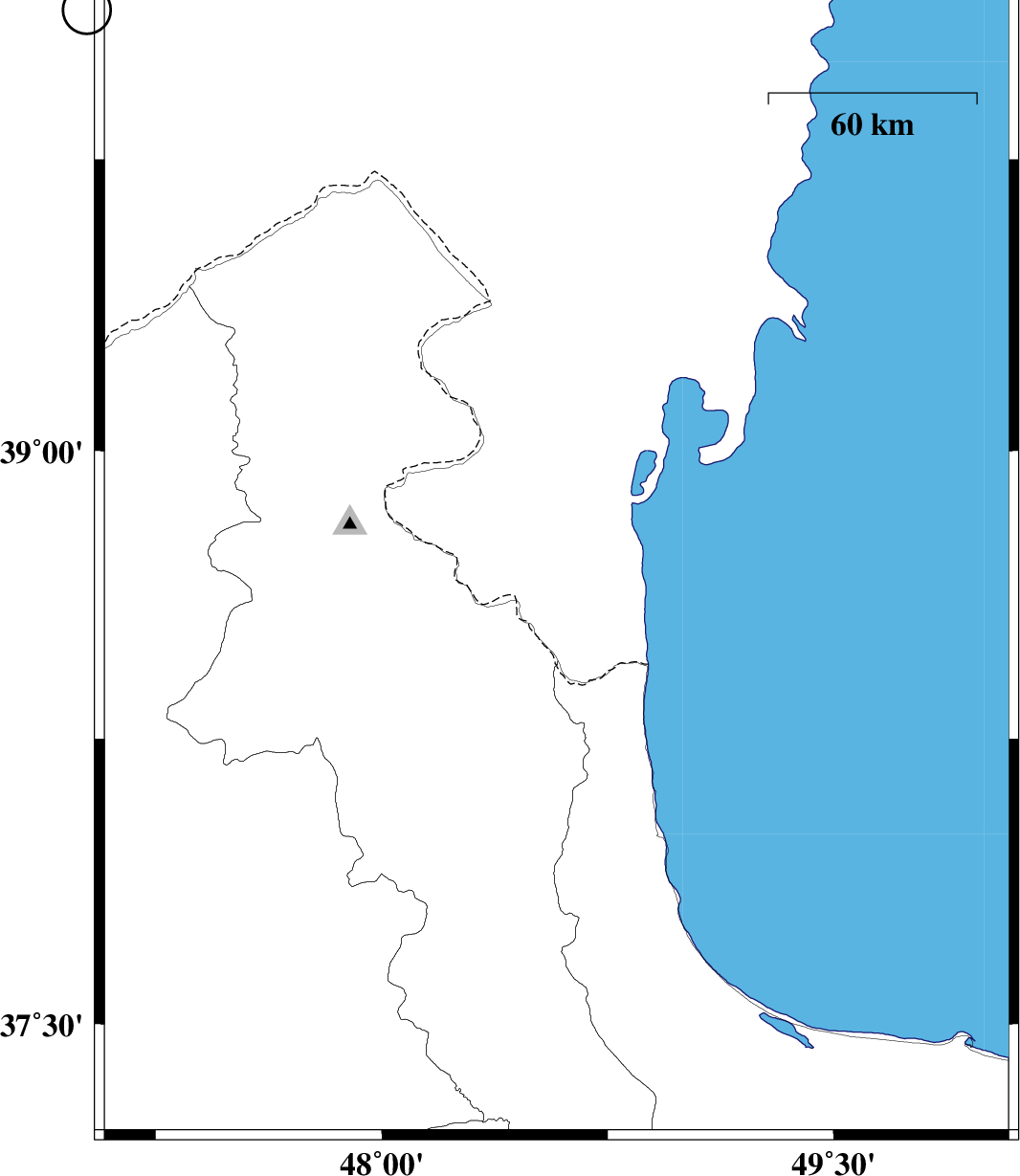| 2012/06/26 | 02:56:21.1 | 07:26:21.1 | 37.68 | 48.05 | 14 | ML:2.7 | Ardebil Province, 30 km West of Givi | ||