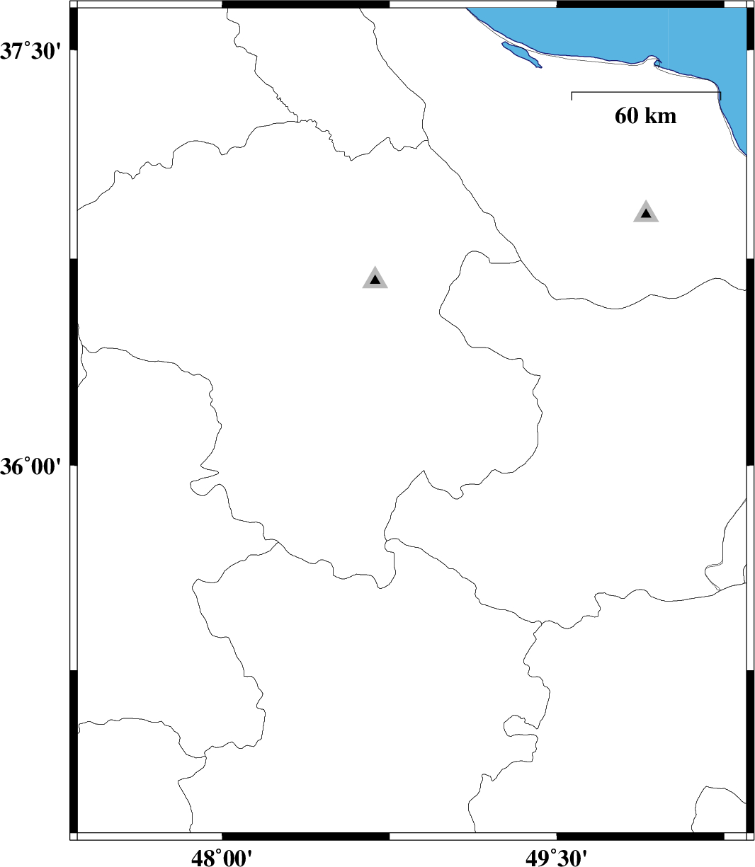 | 2012/07/03 | 21:42:40.7 | 02:12:40.7 | 36.15 | 48.85 | 14 | ML:2.2 | Zanjan Province, 23 km East of Qeydar | ||