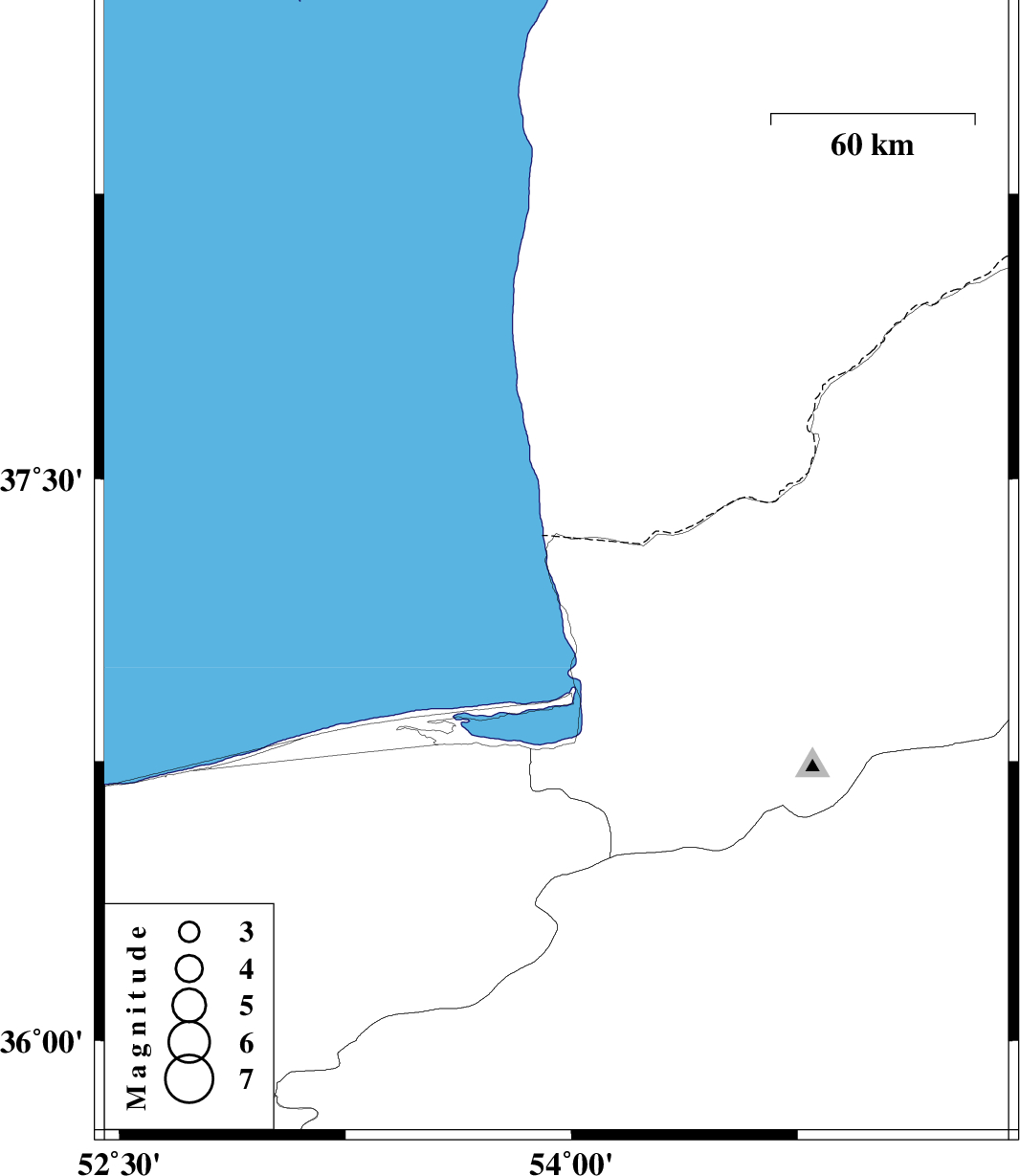 | 2012/07/04 | 07:30:31.8 | 12:00:31.8 | 37.26 | 53.95 | 14 | ML:3 | Golestan Province, 42 km North-West of Bandar-e torkaman |